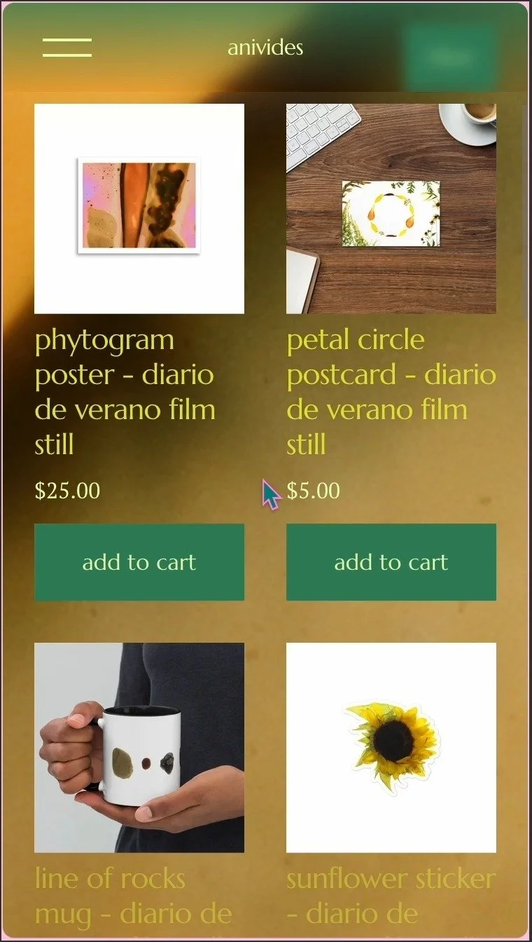 anivides is the interweaving experimental works of multidisciplinary artists Cristal Buemi and Francisca Duran focusing on analog and digital frame-by-frame approaches to showcase their abstract, study and practices. Exploring the idea of weight on our structures due to environments, experiences and their direct relations to trauma, healing and transformation. With a focus on collages of bodily works both in human and plant forms from a diasporic immigrant, bipoc, femme, queer and intergenerational perspective. anividesβ recent film diario de verano has screened at Dawson City Film Fest, Les Sommet Du Cinema Dβanimation, Antimatter Media Art, Analogica, LβAlternativa and Moss Farm Film Invitational.